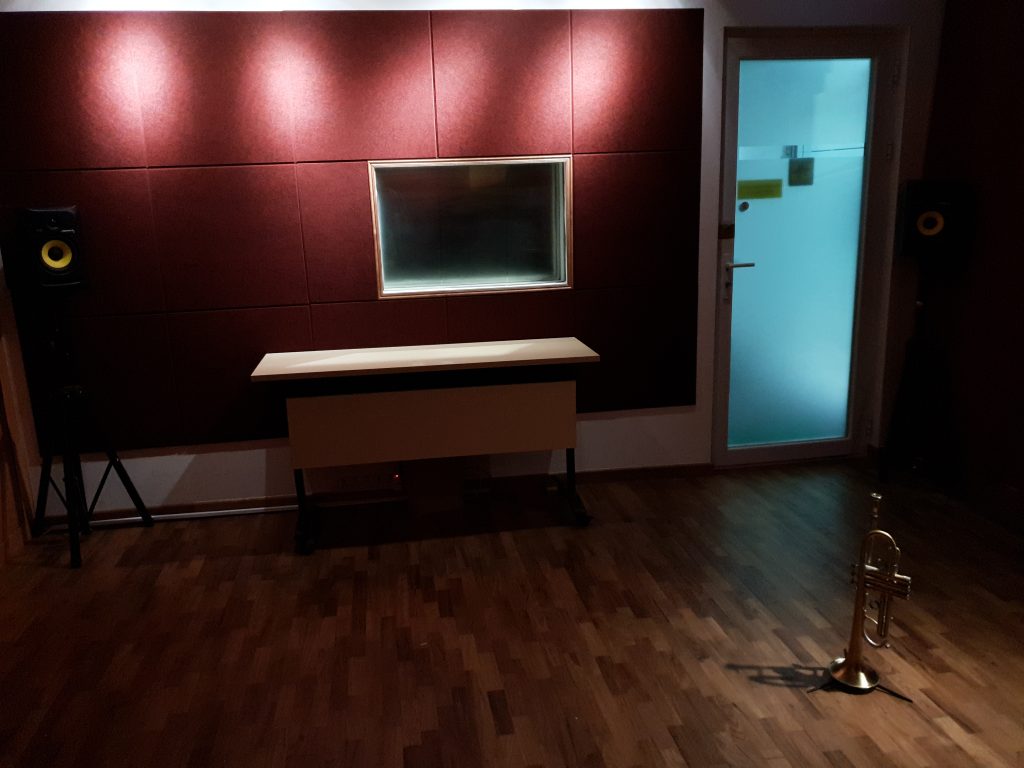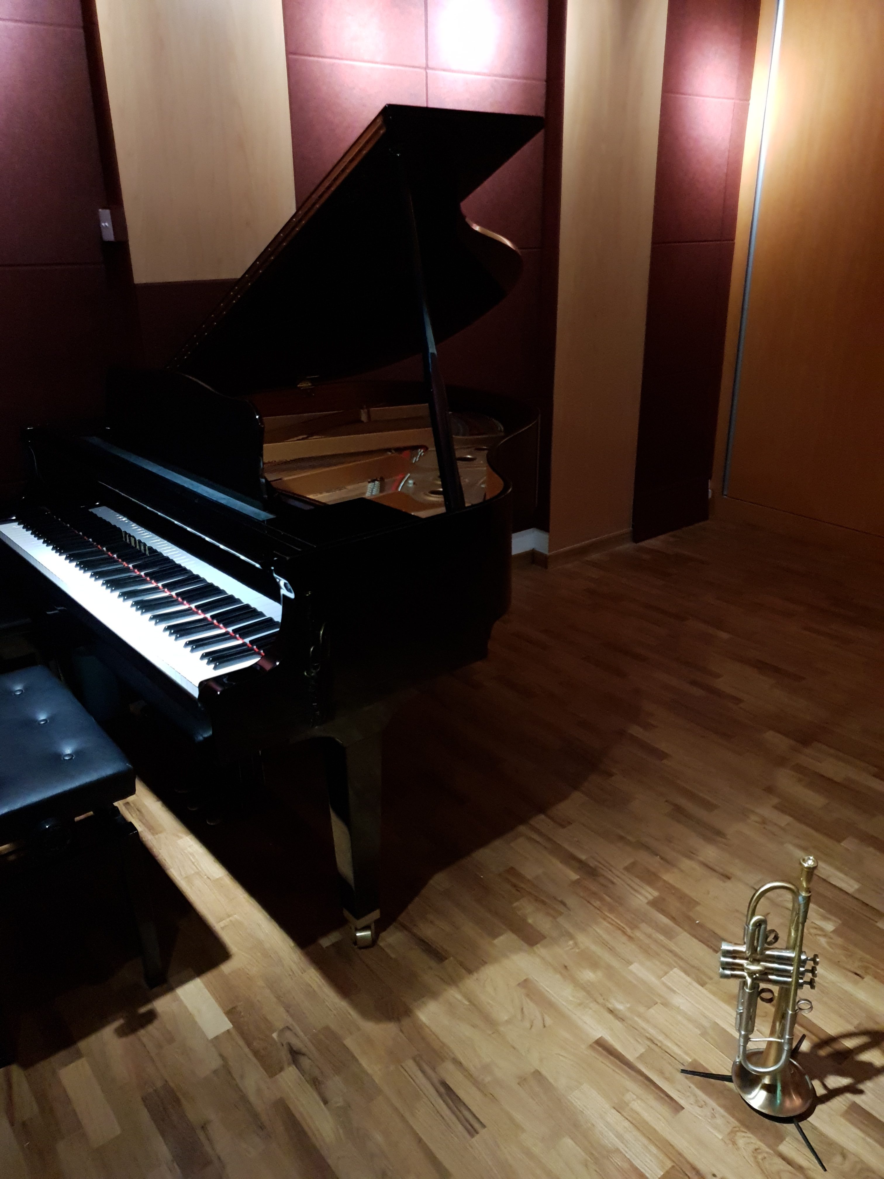 Featuring a Beautiful, State-of-the-Art Acoustic Chamber with Juxtaposed Wood and Acoustic Fabric panels that allow you to customize your preference for natural Sound Dispersion and Reverb, our Recording Suite is the perfect solution for recording your Solos and Ensembles!